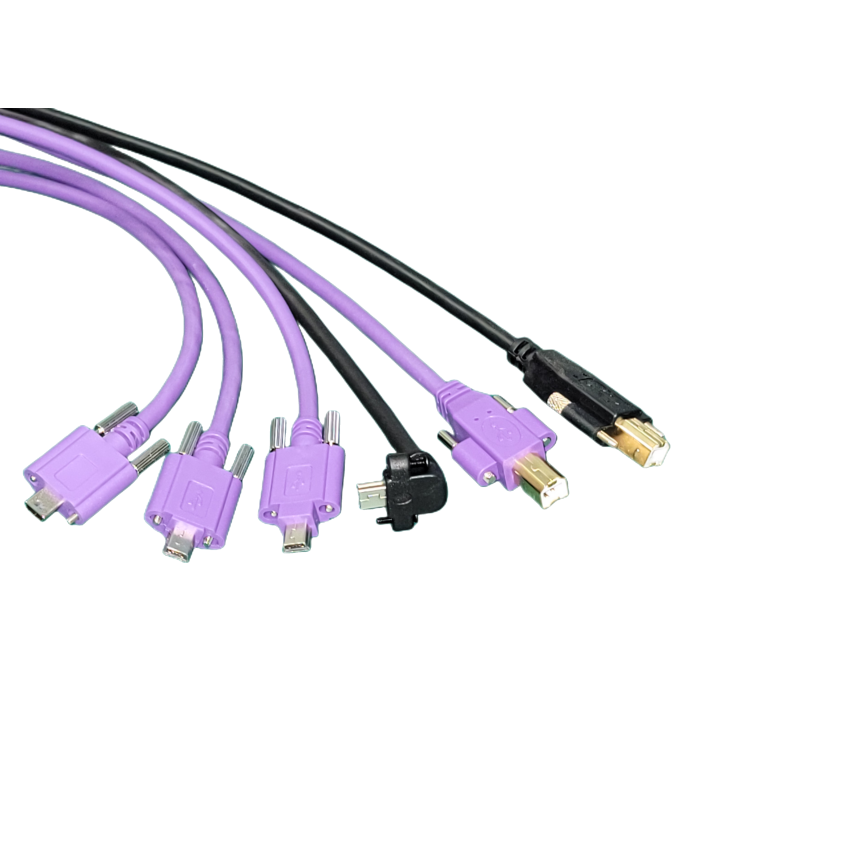 工业相机专用USB高柔耐折弯拖链线包括USB 2.0和USB 3.0及USB3.1几种,相机 端带锁定螺丝,高柔拖链耐折弯1500万次,建议折弯半径大于线径的6-8倍,...