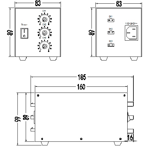 输出三路,模拟手动调节。输入电压AC100V-240V,输出电压5V、12V、24V可选,最大输出电流可自由选择(由客户自定,下单时注明所需电压和功率,总功率默认不超过50W,功率更大的需要定制)。功率在30W以上时会加散热风扇。无安装孔位带脚垫,需要锁螺丝安装的提前通知,可配安装支架。外形尺寸160*83*92mm,底部安装尺寸120*54mm,输出接口2pin SM端子。