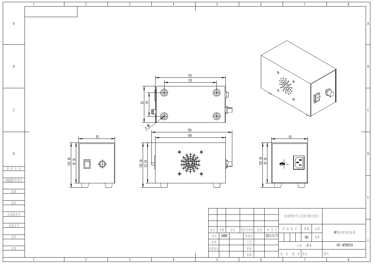 输出1路,模拟手动调节。输入电压AC100V-240V,输出电压5V、12V、24V可选,最大输出电流可自由选择(由客户自定,下单时注明所需电压和功率,总功率默认不超过50W,功率更大的需要定制)。功率在30W以上时会加散热风扇。无安装孔位带脚垫,需要锁螺丝安装的提前通知,可配安装支架。外形尺寸160*83*92mm,底部安装尺寸120*54mm,输出接口2pin SM端子。
