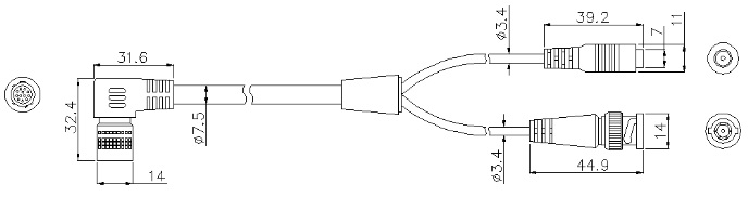 12 Pin航空头 DC+BNC (航空头弯母头)