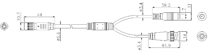 6 Pin航空头  DC+BNC  (航空头直母头)